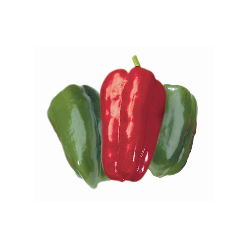 Gros poivron rectangulaire vert tournant au rouge. Très important: lors de la plantation, le point de greffe situé sur les 1ers cm de la tige, un peu au dessus du collet, ne doit surtout pas être recouvert lors de la plantation.